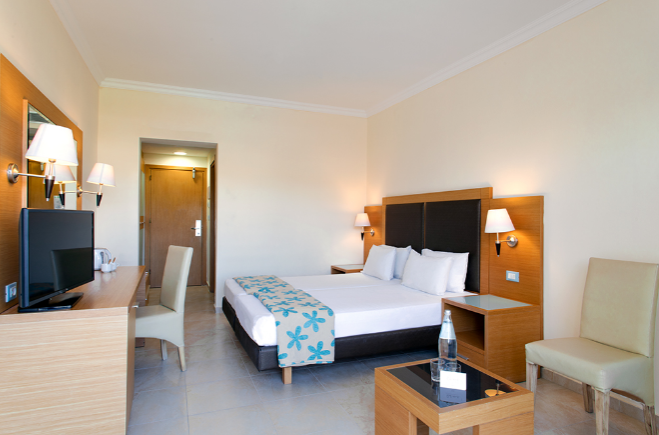 L’hôtel Sol By Melia Cosmopolitan 4* dispose de 377 chambres spacieuses et confortables. Chambres standard vue jardin (22m²) : sont dotées d’un lit double ou deux lits simples, une salle de bain spacieuse avec baignoire avec sèche-cheveux et articles de toilette, réfrigérateur, nécessaire à thé et café, climatisation, téléphone, télévision, (coffre-fort payant), connexion wifi. Elles peuvent accueillir jusqu’à 3 personnes (le 3e lit étant un lit d’appoint). Les chambres disposent d’une terrasse ou balcon meublés avec vue sur le jardin et les palmiers.